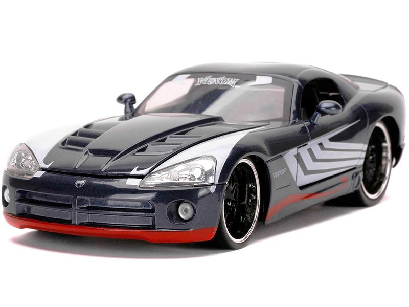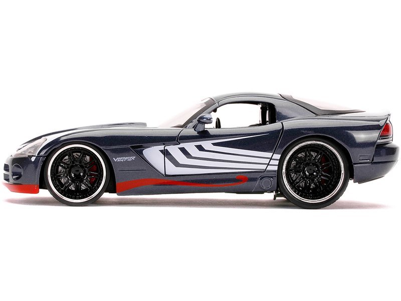 • 1/24 scale diecast car model of 2008 Dodge Viper SRT10 Dark Gray with Venom Diecast Figurine “Spider-Man” “Marvel” Series die cast model car by Jada.