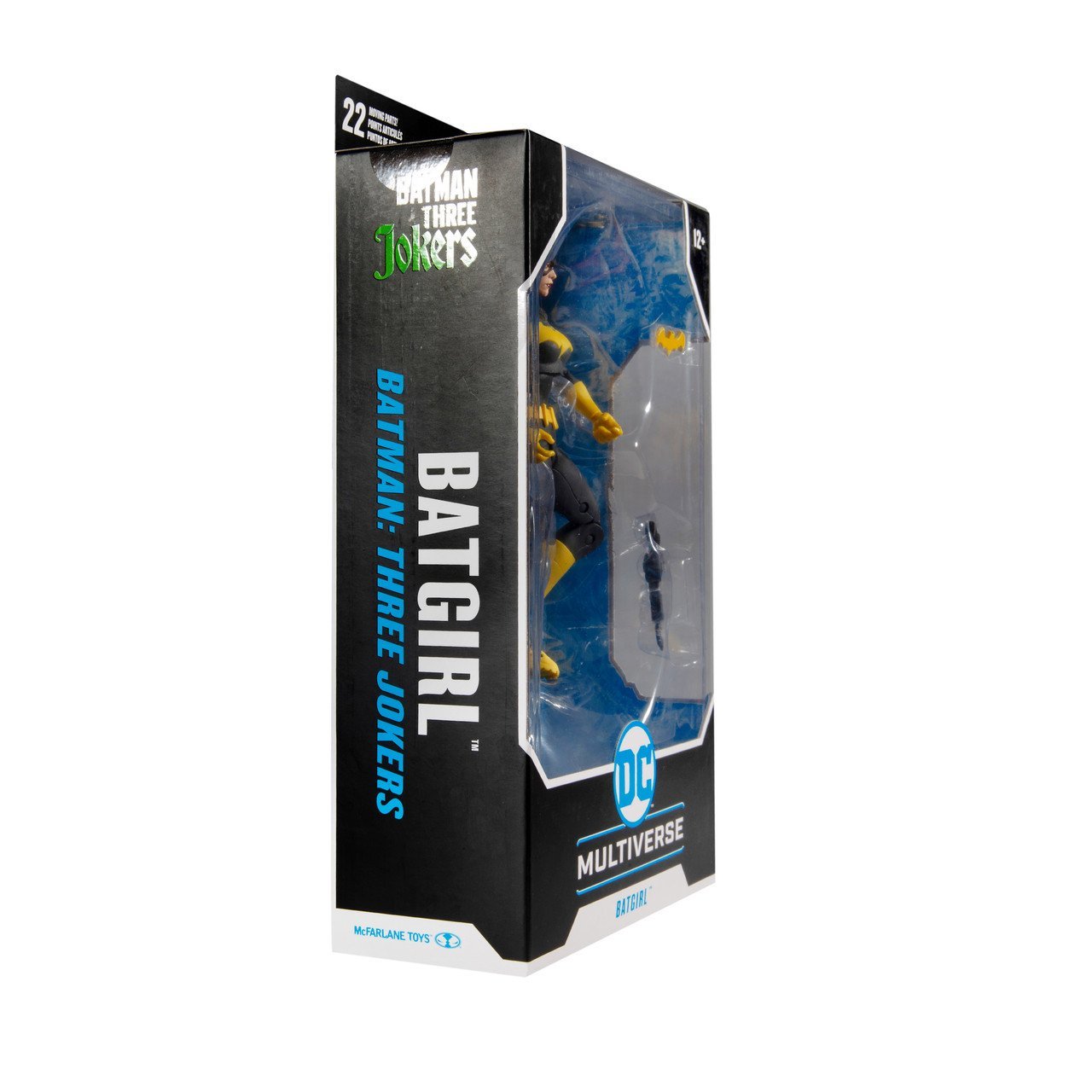 By day, Barbara Gordon is the bookish daughter of the Gotham City Police Commissioner, Jim Gordon. By night, Barbara dons a cape and cowl as Batgirl, committed to justice like her father. While her Utility Belt is equipped with Batarangs and other crime-fighting gadgets, her greatest tools are her brilliant mind and her unwavering determination. Batgirl is an expert martial artist and gymnast, trained in part by Batman, who’s extremely athletic and agile. Her eidetic memory, heightened intelligence, and advanced knowledge of computers makes her a natural leader and skilled crime fighter. Incredibly detailed 7″ scale figure based off the DC Multiverse. Designed with Ultra Articulation with up to 22 moving parts for full range of posing and play. Batgirl is based on her look in the Batman: Three Jokers Comics. Batgirl includes a Grapple Launcher, Batarang and base. Included collectable art card with figure photography on the front, and character biography on the back. Collect all McFarlane Toys DC Multiverse Figures.