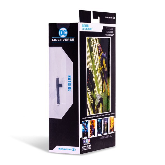 Few people can match Barbara Gordon in terms of raw willpower and determination. Barbara has always been a person of action. In her mind, backing down is never an option. Having one of Gotham City’s most well-known police commissioners as a father had a massive impact on her. Jim Gordon gave his life for Gotham, and now she wants to make sure it wasn’t in vain. After a face-off that put Barbara in a wheelchair, she became Oracle, a powerful information and communications expert. With extensive training and rehabilitation, she recovered from her wounds, and returned to active duty as Batgirl. Barbara is highly trained in a variety of fighting styles, such as kickboxing, capoeira, and jiu-jitsu. Her signature weapon is the tonfa. Barbara also displays great skill when it comes to hacking or coding in computers and technological systems to dig for information. Incredibly detailed 7″ scale figure based off the DC Multiverse. Designed with Ultra Articulation with up to 22 moving parts for full range of posing and play. Batgirl is based on her look in the video game Gotham Knights. Batgirl includes a side handle baton and a base. Included collectible art card with figure photography on the front and character biography on the back. Collect all McFarlane Toys DC Multiverse Figures.