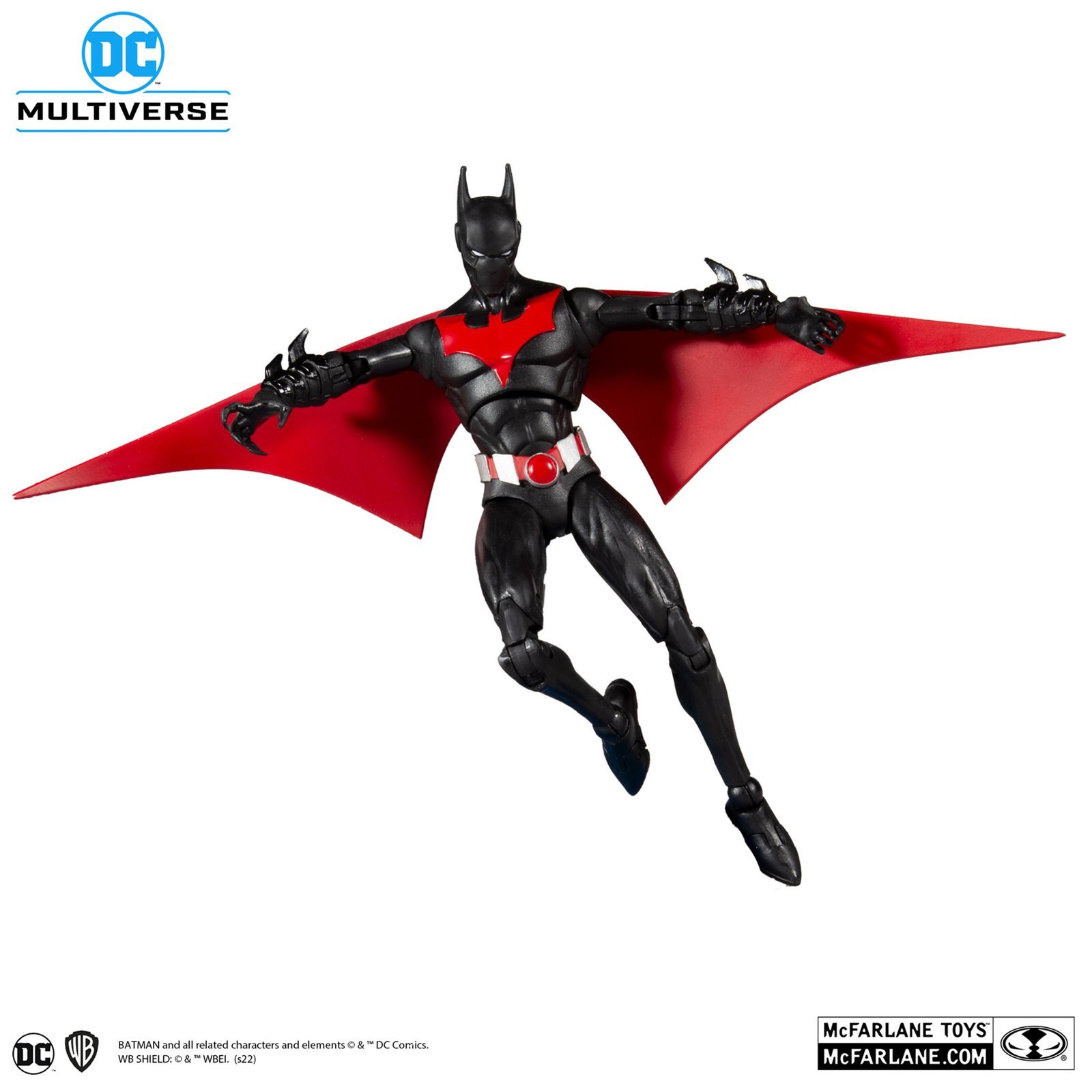 • Batman Beyond comes with 2 Batarangs, alternate hands and a base