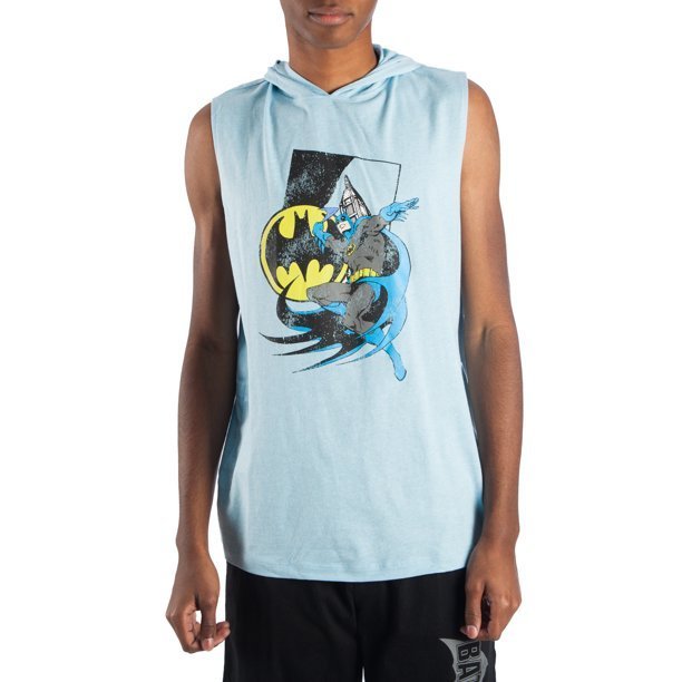 Batman Mens 2 Pc Sleep Set Distressed Blue Hoodie Shirt & Shorts Pajamas