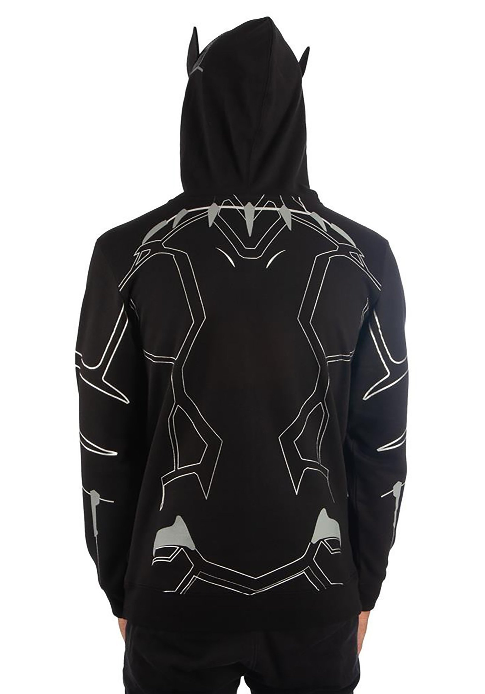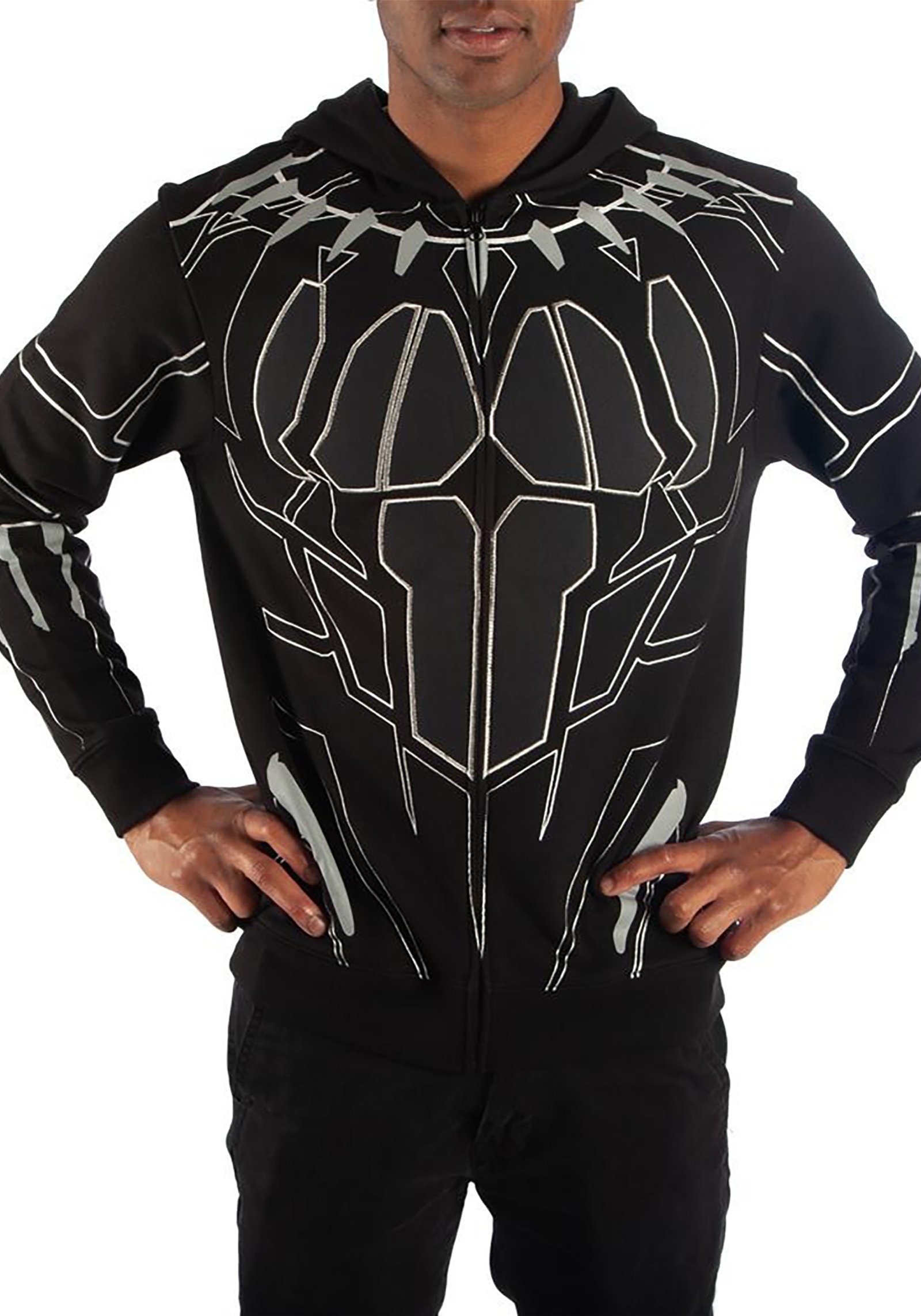 Unfortunately, we can’t all be T’Challa. Not only is he the king of Wakanda, but he also gets to wear cool super-suits built by his sister, Shuri. We’ve been trying to figure out how to build a Black Panther suit of our own, but we’re just not as smart as her! In our desire to wear a cool super-suit like T’Challa, we did come across something that’s almost just as cool, this Black Panther hoodie.