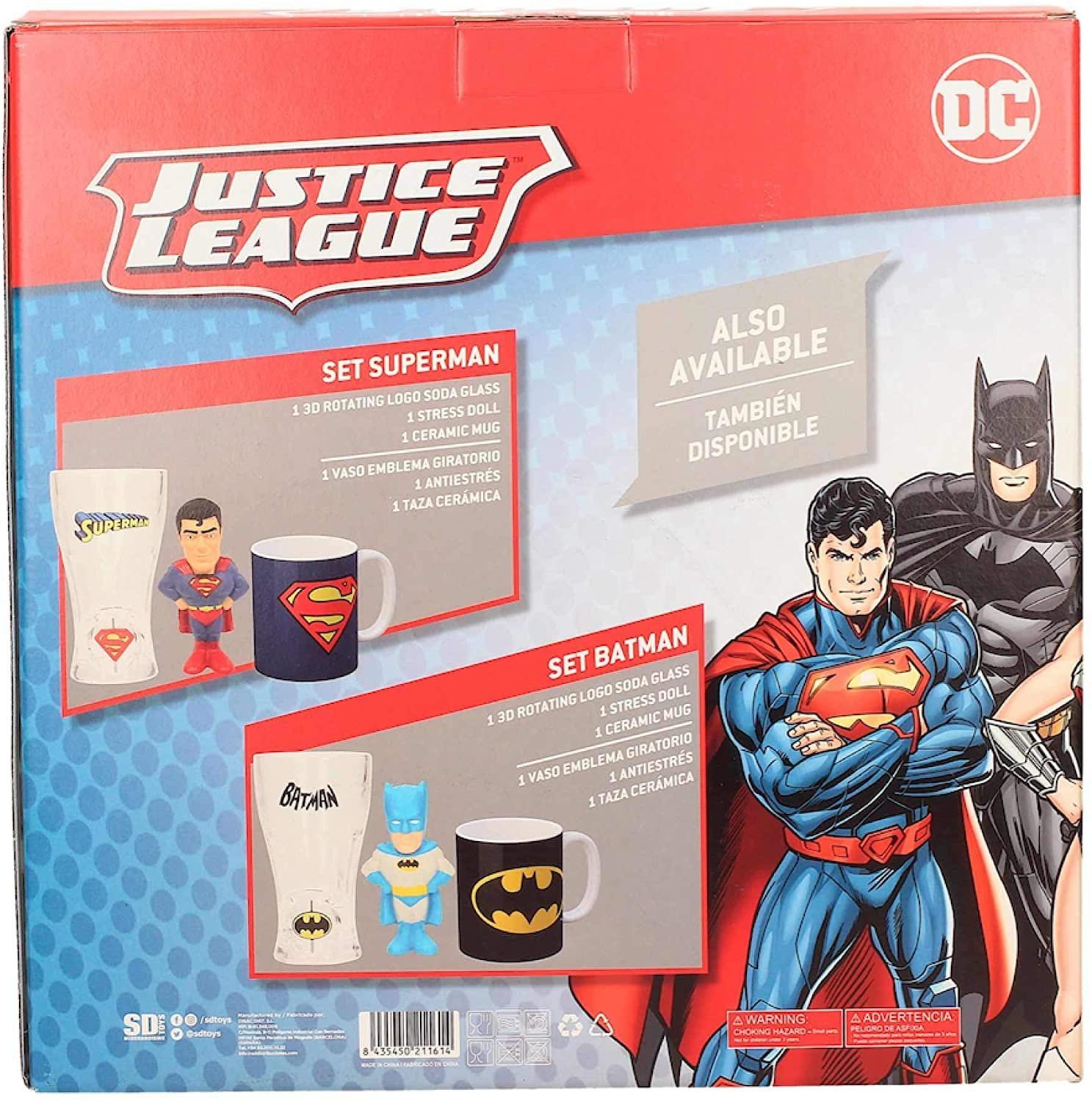 A set of assorted products, ideal as a gift item, based on the DC Superman character. Contains a stress figure, a cup and a tumbler with a rotating symbol. Comes in a box with full colour illustrated window and a very special price. Don’t be without it!