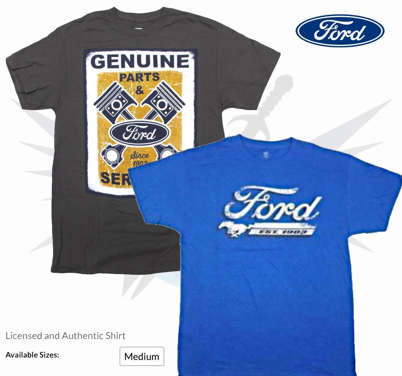 1- GENUINE FORD PARTS & SERVICE SINCE 1903 ENGINE GREY T-SHIRT