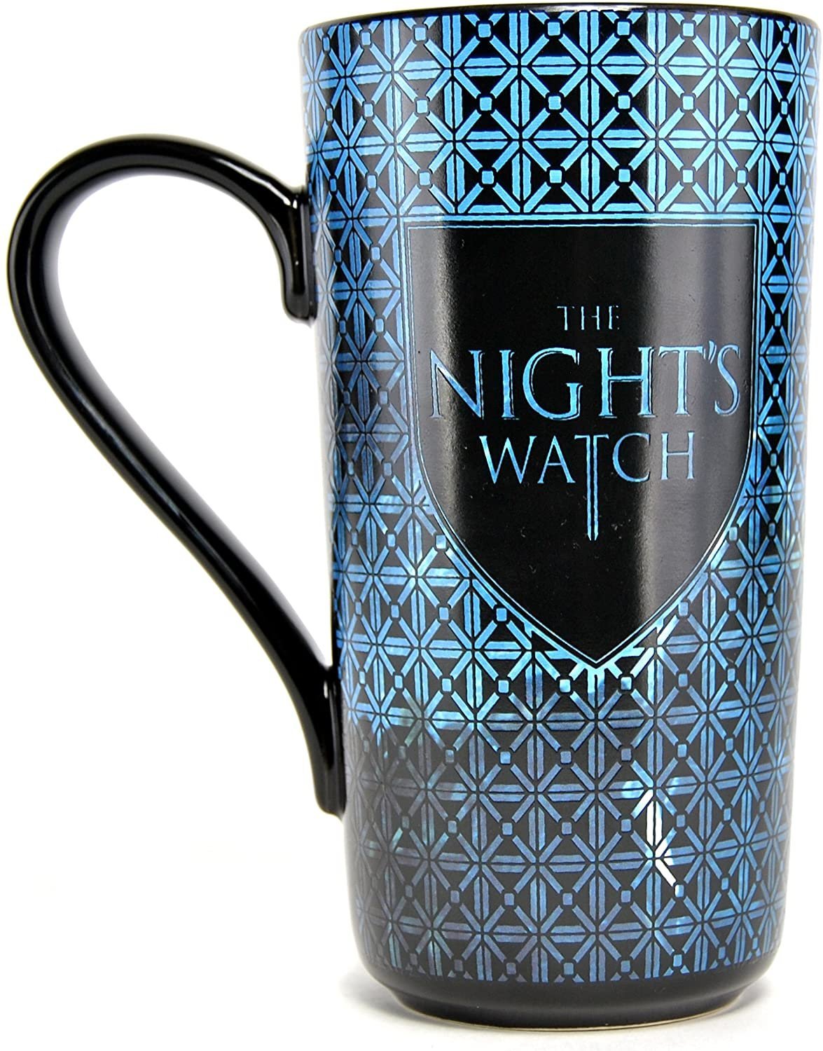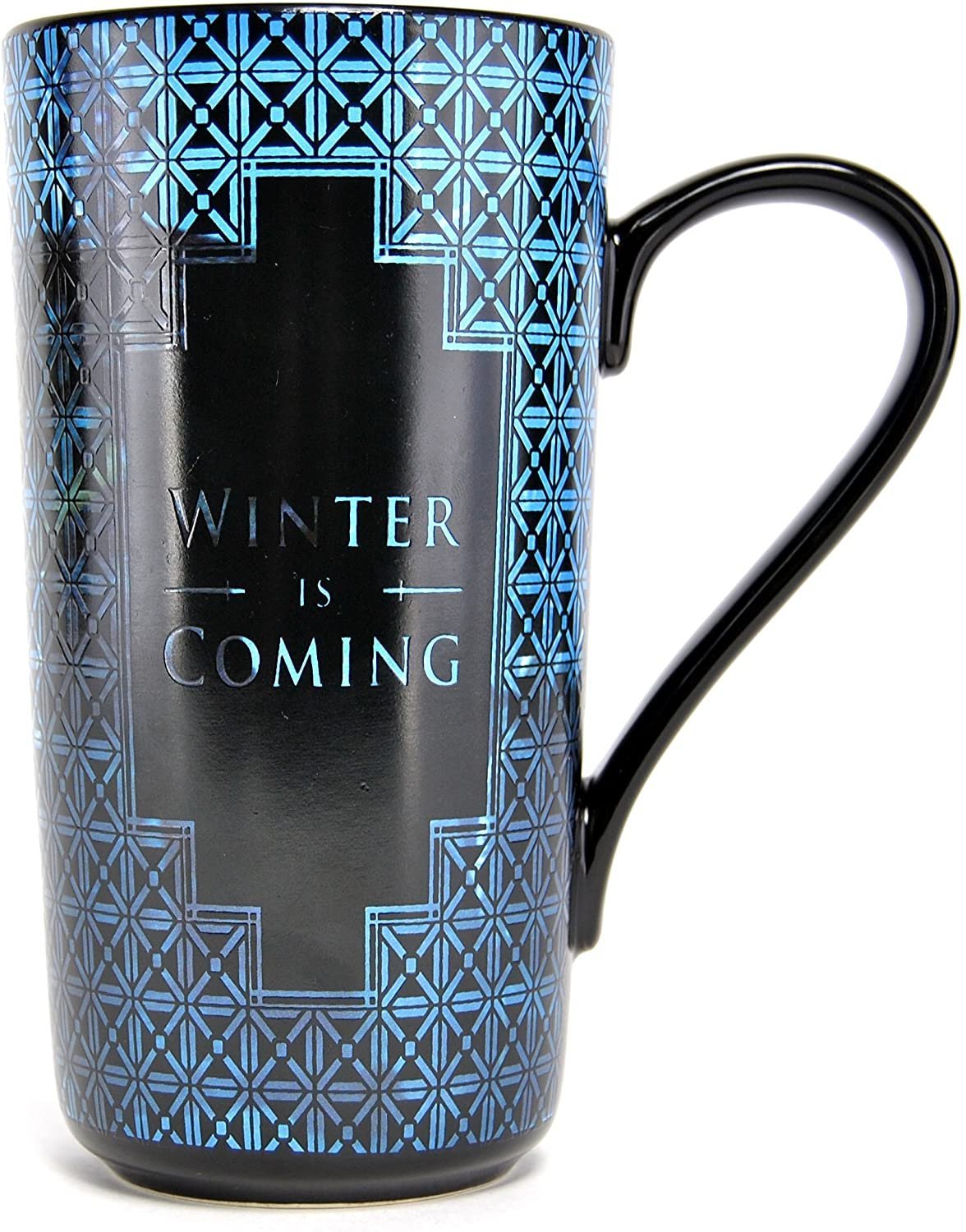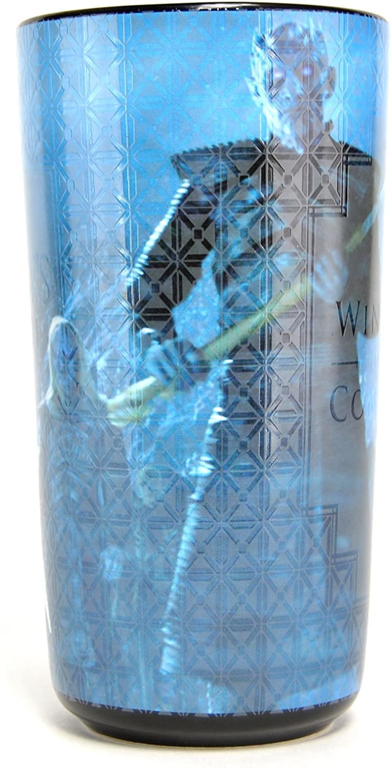 This Game of Thrones Heat Changing Latte Mugs commemorates one of the most devastating battles so far, the Massacre at Hardhome, where the Night’s Watch battled against the White Walkers. Cold, the Game of Thrones mug shows the Stark house words Winter is Coming on the front, which is a warning not only against the cold season but against the White Walkers. The back shows The Night’s Watch shield. When hot liquid is poured in, the Game of Thrones mug transforms to reveal the Night King, leader of the White Walkers, watching as the remaining wildings and members of the Night’s Watch evacuate by boat, surrounded by the thousands of wildlings that were killed and raised as wights. Once the drink is finished the Game of Thrones gift mug returns to its original state as it cools.