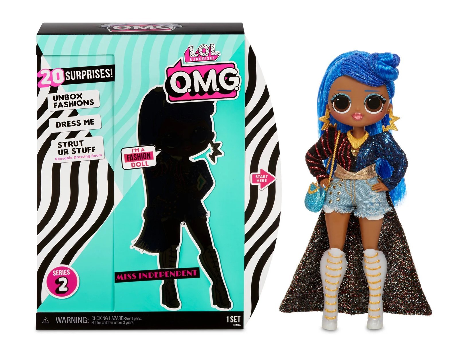 - Unbox 20 surprises with L. O. L. Surprise O. M. G. Fashion doll, miss independent, with stunning features, styled hair and articulated for tons of poses.