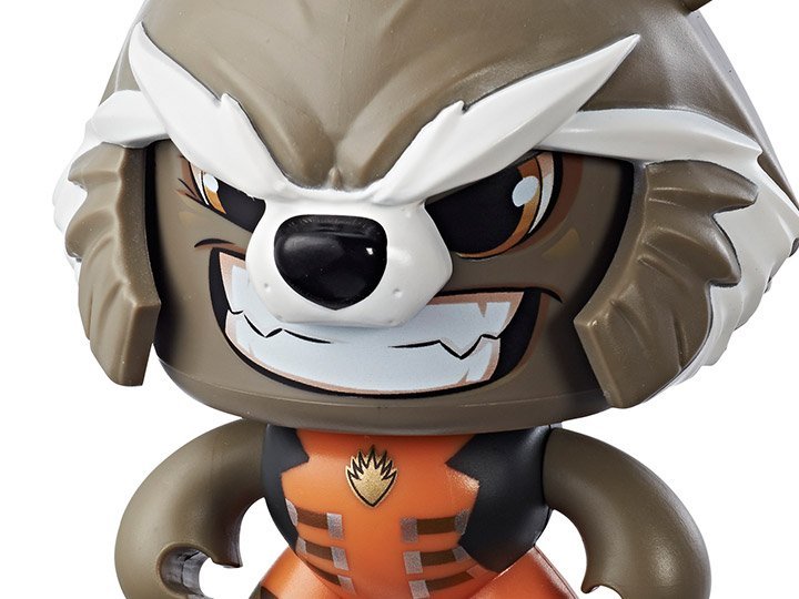 Call it a moodswing, or call it a moodSPIN, with Marvel Mighty Muggs, heads are going to turn…literally. This Rocket Raccoon Mighty Muggs figure features a push-and-turn mechanism so that when kids and fans continue pressing the button, they’ll send the mechanical genius’s head spinning! With 3 different expressions and a classic character design that’ll have collectors doing a triple take, Marvel Mighty Muggs send moodswings on the upswing.