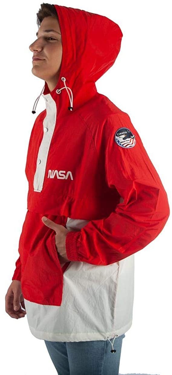 • BOLD DESIGN – The NASA windbreaker is brightly colored with red and whit and a NASA logo on the left chest.