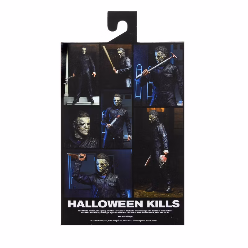 From Halloween Kills, the thrilling sequel to 2018’s hit Halloween movie! This screen-accurate Michael Myers action figure stands in 7″ scale and comes with knives, bat, bulb, skull mask, Halligan bar and interchangeable head and hands… and he’ll need it all when the Strode women set out to end his evil reign of terror. Comes in collector-friendly window box packaging with opening front panel.