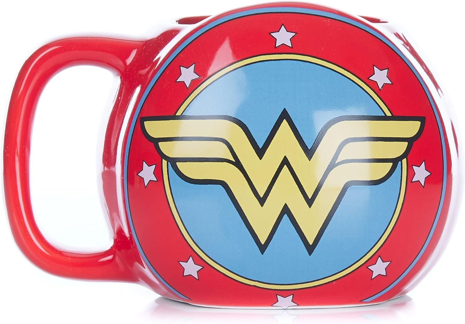Enjoy a refreshing cuppa with a superhero in the unique shape of this wonder woman shield mug. Shaped like wonder woman’s iconic shield, this red and Blue hero’s mug will help tackle the fight against thirst and give you a perfect tea break. Wonder woman, first appearing in all Star comics in 1941 (later to form part of DC Comics) is the legendary Amazonian princess who goes by the alter ego of Diana Prince. With her Amazonian strength and super-powered bracelets, wonder woman has become an enduring hero for millions of fans world-wide. Featuring in her own blockbuster movie, as well as the wider DC franchise films such as justice League, wonder woman is one of the most popular characters in the DC Comics canon. Great for fans of the Comic books, films and TV series, the wonder woman shield mug is an DC Comics product, and is an ideal gift solution for birthdays, Christmas stocking fillers or even the office secret Santa. Not suitable for dishwasher or microwave use. Box Contains 1x oversized mug