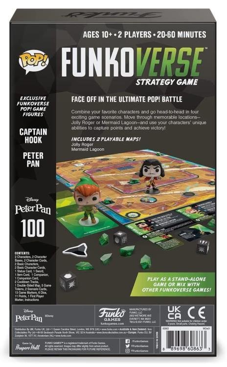 Funkoverse Strategy Game: Peter Pan 100 is a standalone game that includes the characters Peter Pan and Captain Hook. This set may be combined with others, giving you the ability to assemble the team you want!