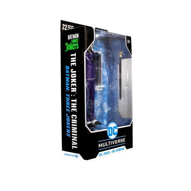 Once a small-time crook, The Joker fell into a vat of chemicals that turned his skin white, his hair green, and his lips red-like a crazed clown. His crimes always involve pranks and jokes ending with twisted punchlines that are only funny to The Joker. He may look like he’s clowning around, but this guy is bad news for Batman and Gotham City! In a stunning turn of events, Batman has learned that there are, in fact, three versions of The Joker operating in Gotham City. This one, known as The Criminal (Classic), is the most methodical of the trio, and wants The Joker to be seen as more than just an agent of chaos. So, he crafts a diabolical plan involving Joe Chill, the man who killed Bruce Wayne’s parents, to destroy the Dark Knight once and for all! Incredibly detailed 7″ scale figure based off the DC Multiverse. Designed with Ultra Articulation with up to 22 moving parts for full range of posing and play. The Joker: The Criminal is based on his look in the Batman: Three Jokers Comics. The Joker: The Criminal includes a cane and a base. Included collectable art card with figure photography on the front, and character biography on the back. Collect all McFarlane Toys DC Multiverse Figures.