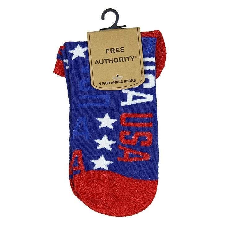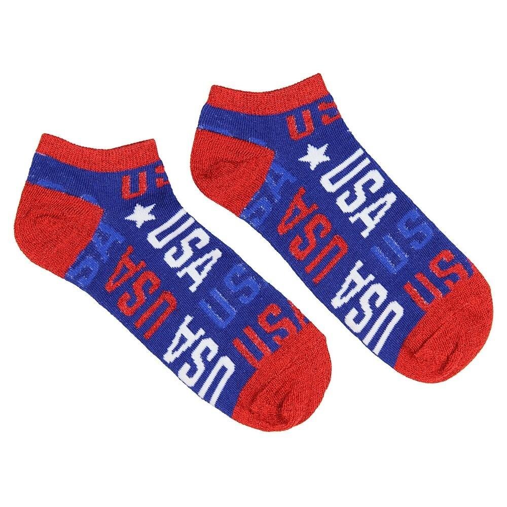 This pair of USA Americana No Show Ankle Socks features the classic red, white and blue colors of Old Glory. The socks themselves have a red shimmer thread woven throughout the red areas.