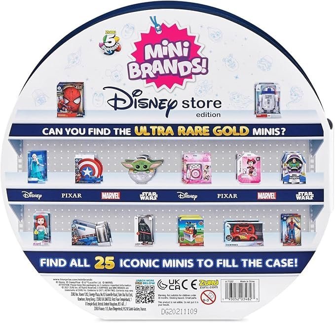5 DISNEY TOY MINI BRANDS INCLUDED: Unbox 5 Disney Mini Brands including 2 exclusive minis which only found in the Collector’s Case to complete your collection. STORE, DISPLAY & COLLECT: Every Collector’s Case has room for 25 iconic Disney Mini Brands for the ultimate collector’s prize. Can you find them all? ALL NEW DISNEY TOY STORE MINI BRANDS: Unbox 70+ perfect mini replicas of Disney Toy brands like Darth Vader, Elsa from Frozen, Mickey and Friends and more. Perfect mini detail to delight all mini fans! RARE DISNEY TOY STORE MINIS: Find ultra gold minis too!